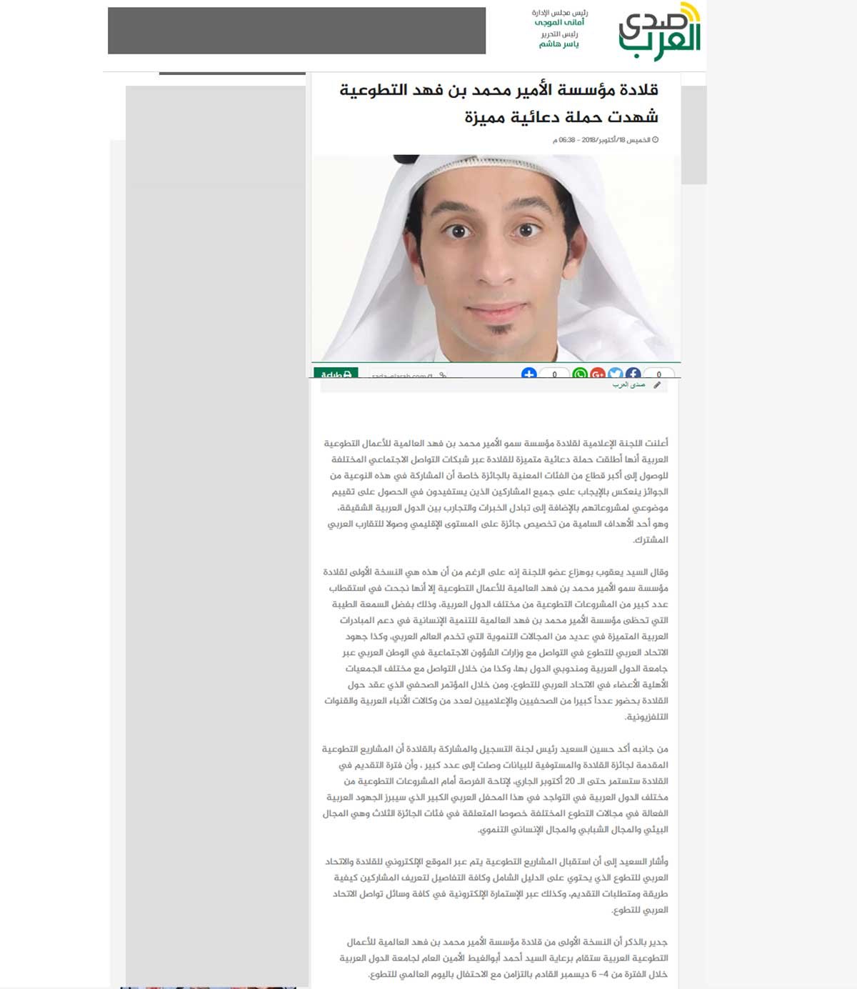 قلادة مؤسسة الأمير محمد بن فهد التطوعية شهدت حملة دعائية مميزة