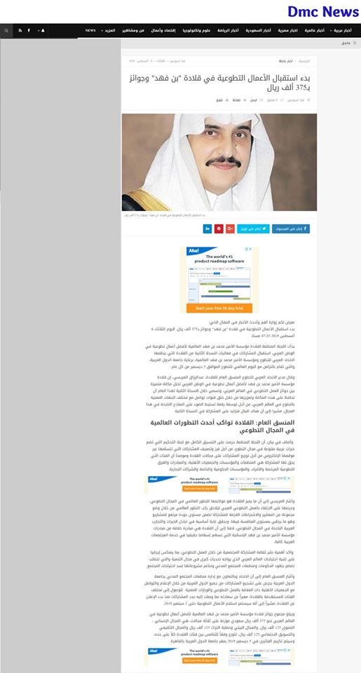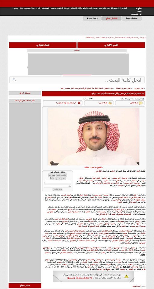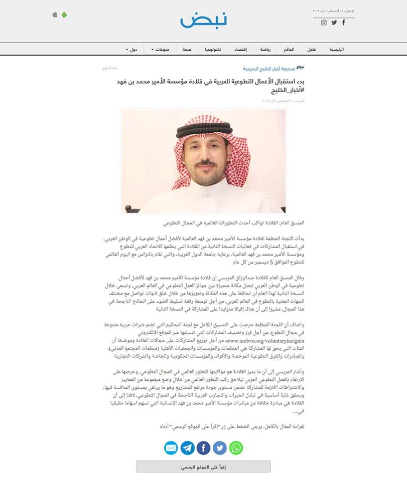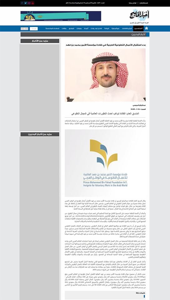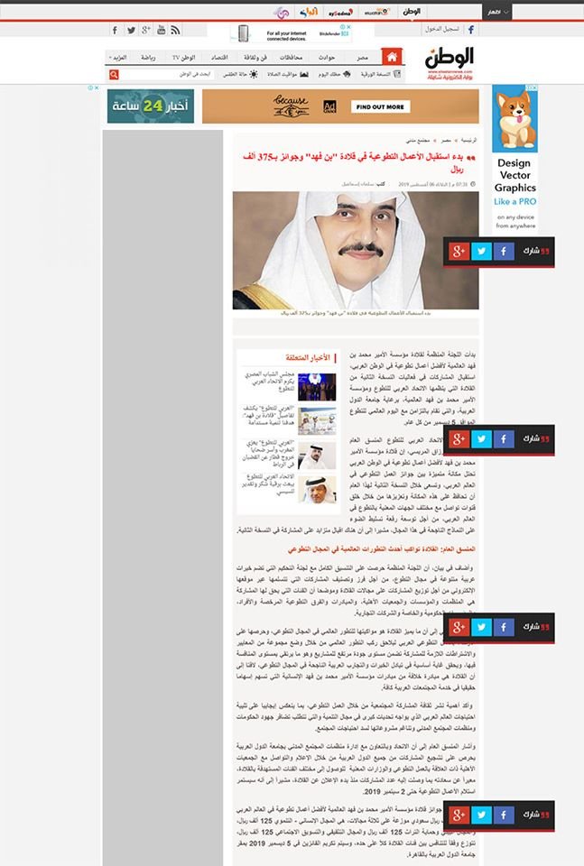 التغطية الإعلامية لقلادة مؤسسة الأمير محمد بن فهد العالمية للأعمال التطوعية