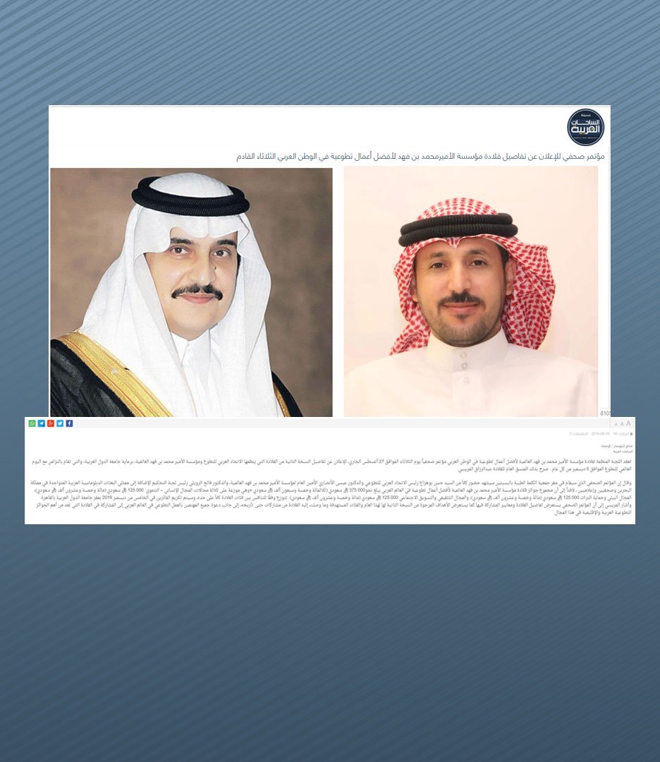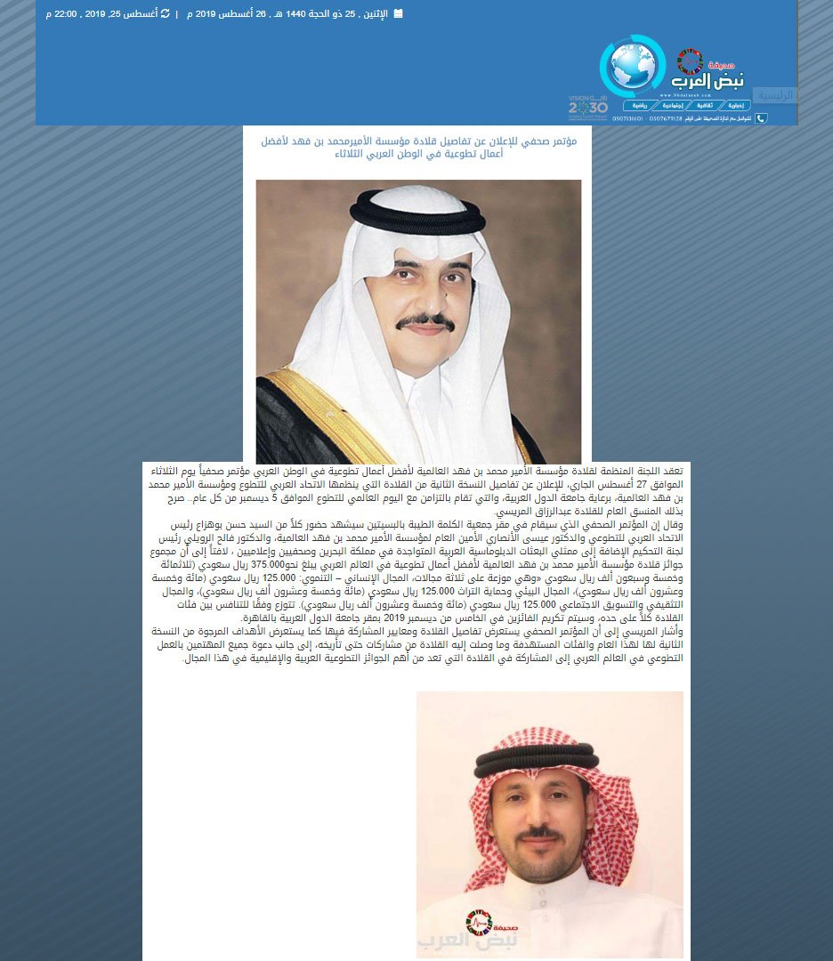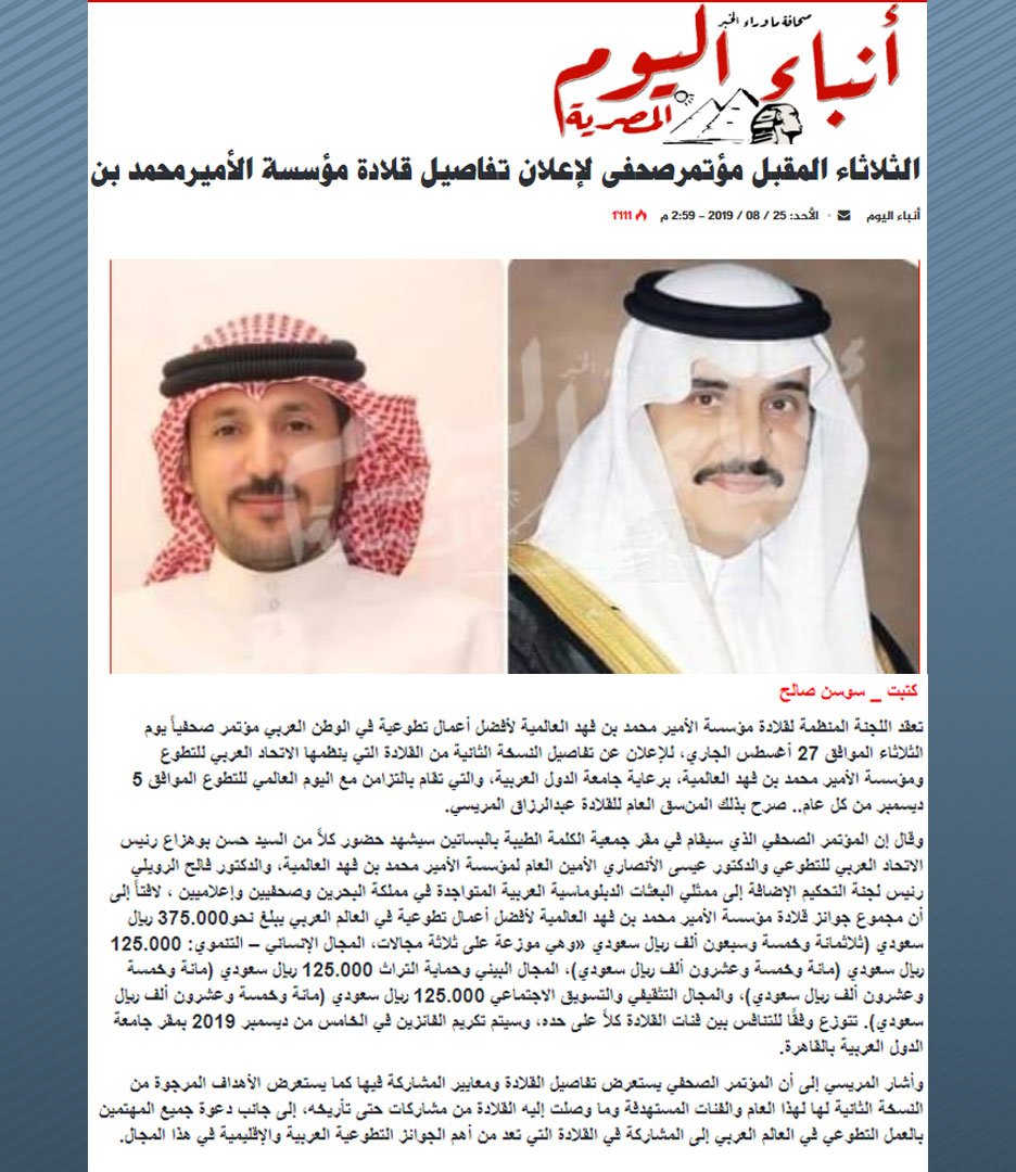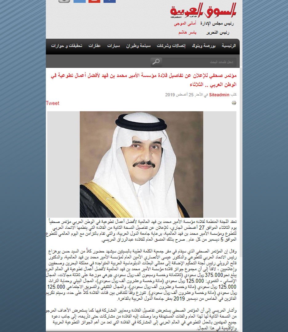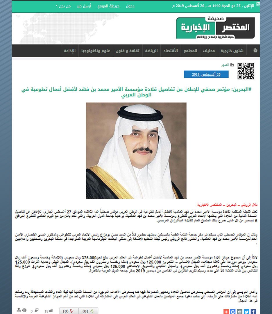 التغطية الإعلامية لقلادة مؤسسة الأمير محمد بن فهد العالمية للأعمال التطوعية 26 - اغسطس - 2019