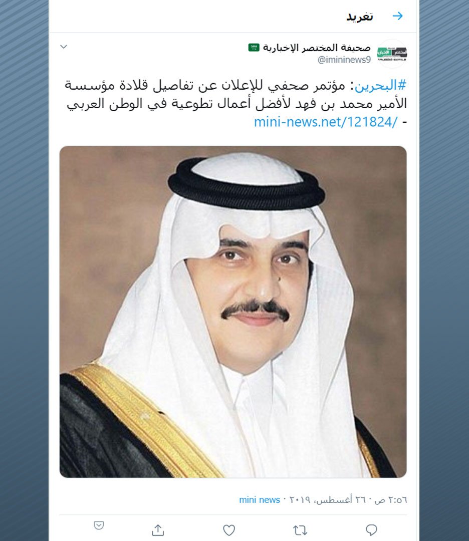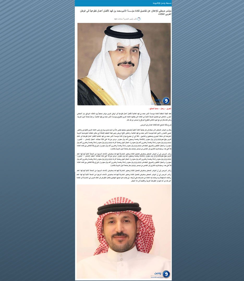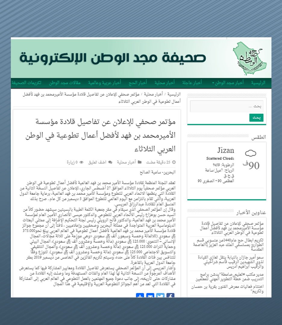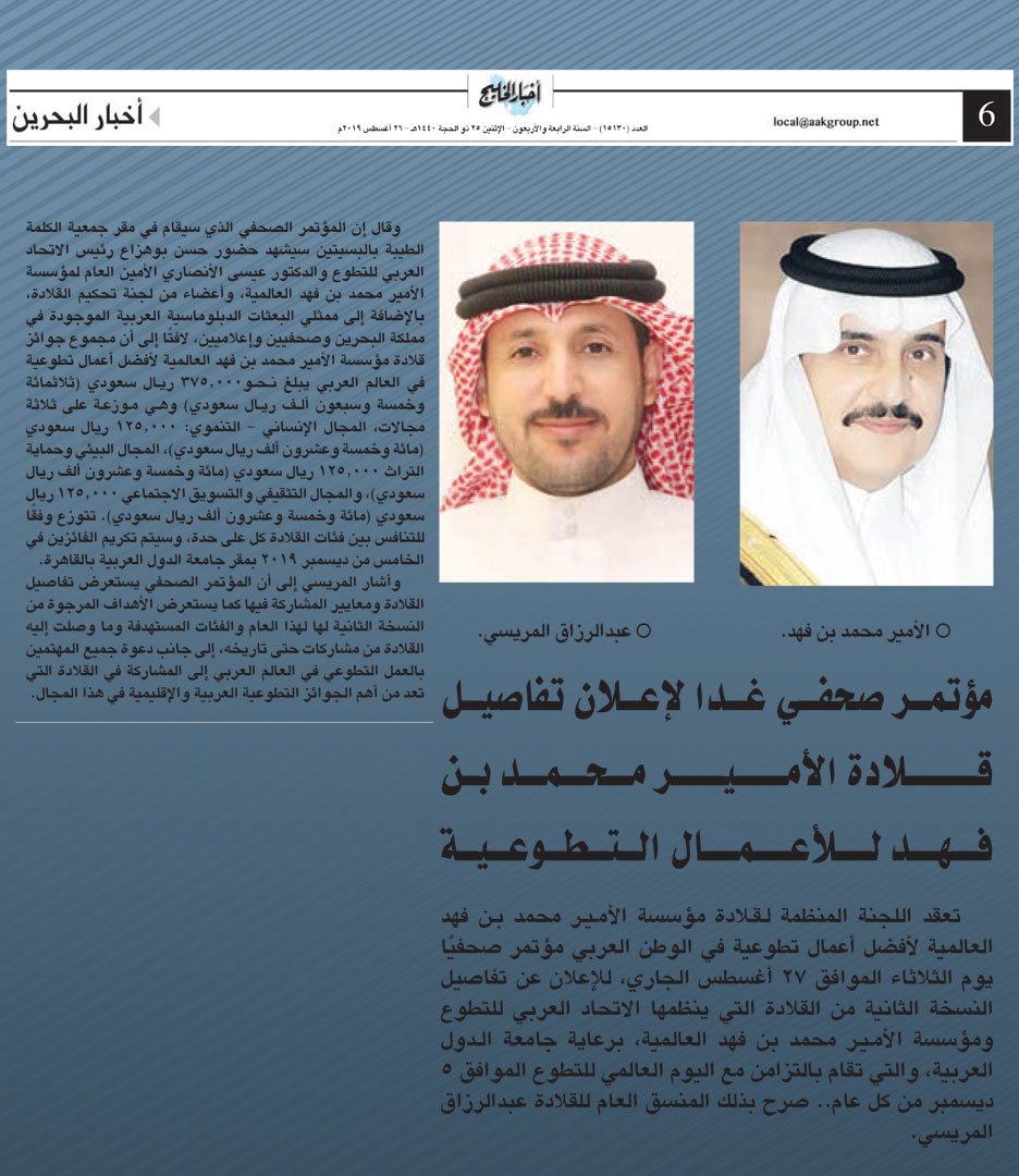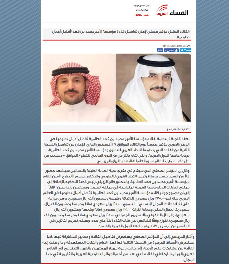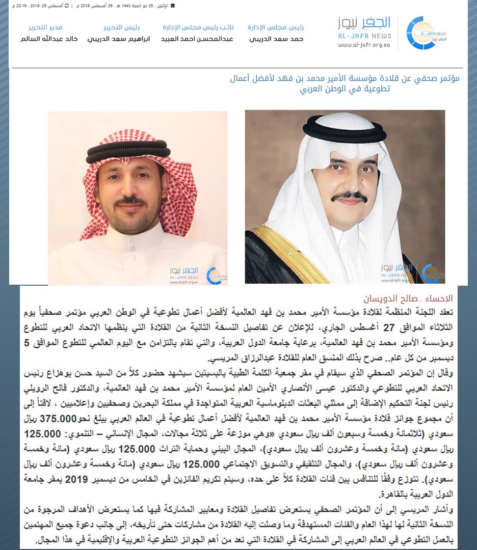 التغطية الإعلامية لقلادة مؤسسة الأمير محمد بن فهد العالمية للأعمال التطوعية 26 - اغسطس - 2019