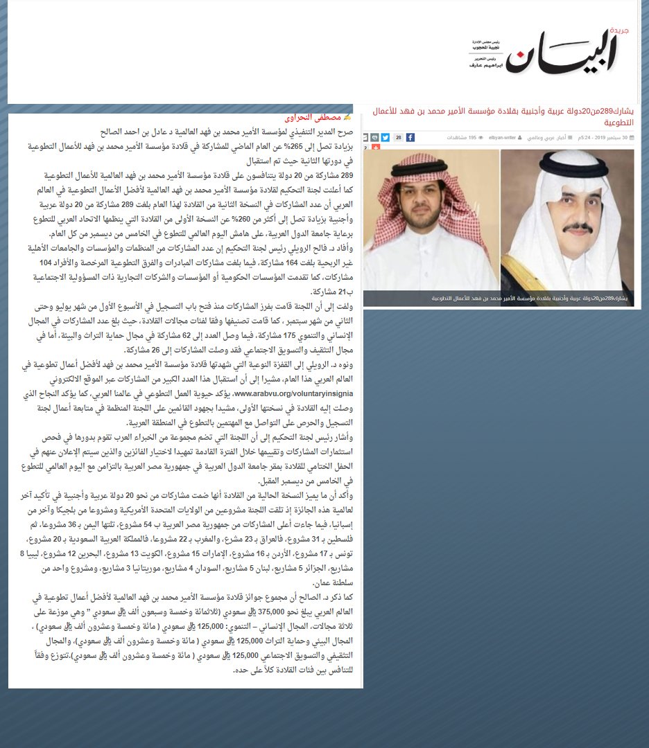 يشارك289من20دولة عربية وأجنبية بقلادة مؤسسة الأمير محمد بن فهد للأعمال التطوعية