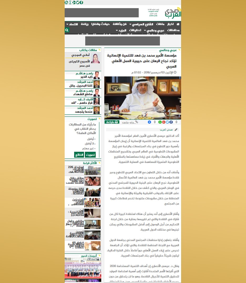 بدء التحضير لحفل توزيع قلادة مؤسسة الأمير محمد بن فهد العالمية للأعمال التطوعية في الوطن العربي